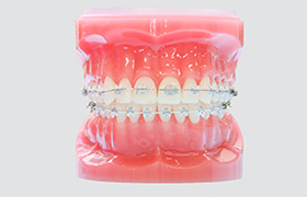 矯正治療で最も一般的な装置で、多くの方がイメージする矯正方法です。歯の表面にブラケットを取り付け、ワイヤーで歯を動かして整えていきます。ブラケットは金属製のほか、目立ちにくいセラミック製のものも選べます。
